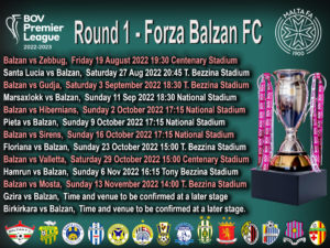 01/08/2022 - The Fixtures for MD1 to MD11 of the Premier League games for BALZAN FC are out !!!